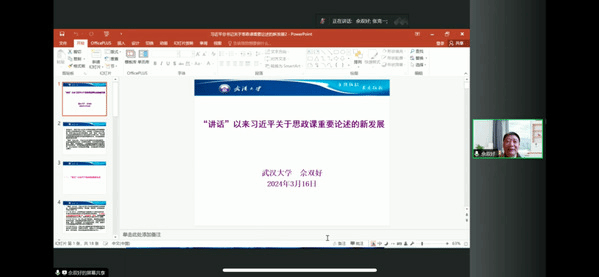 佘双好教授线上发言武汉大学360体育 教授、博士生导师、武汉大学当代中国研究中心主任、马克思主义理论与中国实践协同创新中心主任佘双好教授以“‘3.18重要讲话’以来习近平总书记关于思政课重要论述的新发展”为题作主旨发言。佘双好教授在交流中谈到:五年来,习近平总书记持续关注高校思想政治理论课建设,发表系列重要讲话,思政课建设的指导思想日益明确;党和国家出台一系列文件,思政课建设的制度体系更加完善;以习近平新时代中国特色社会主义思想为核心内容的课程体系建设更加突出,思政课程建设的积极性得到全方位调动,思政课建设内容体系重点更突出、层次性更明显,思政课教学改革探索更加积极主动,思政课建设格局实现新的拓展,对于思政课建设条件保障和政策支持更加有力,思政课教师队伍面貌发生根本性改观。经过这五年高校思政课程建设的成就和变革洗礼,高校思政课将在新时代新征程上发挥更大的作用。