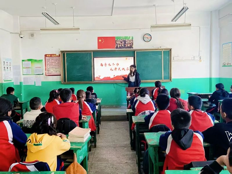 姜文瑞,共产党员,思想政治教育20-6班毕业生,入选新疆师范大学第26届研究生支教团。在教学工作中,担任小学五年级道德与法治及英语科目教学,覆盖百余名学生。除日常教学外,她同支教团一起组织了丰富的校园活动,同时,独立策划并开展趣味思政课——民族团结一家亲,营造良好的校园学习氛围。