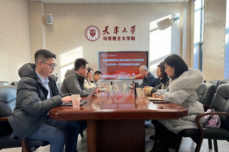交流座谈,天津科技大学马院院长朱新华、副院长邢红梅、副院长闫金奎等人参加座谈。座谈会上,双方就人才培养、学科建设、大中小学思政课一体化建设、师资队伍建设、科研项目、教学成果等方面的建设情况进行了深入交流探讨。