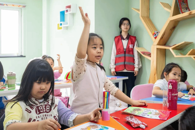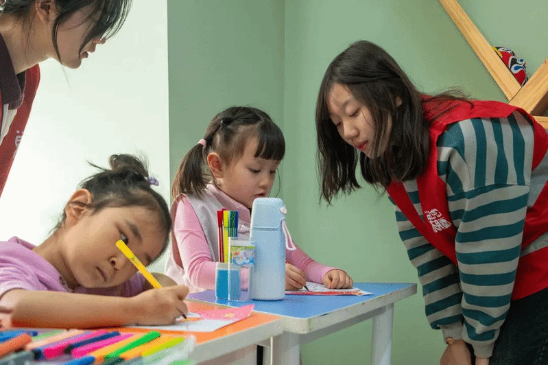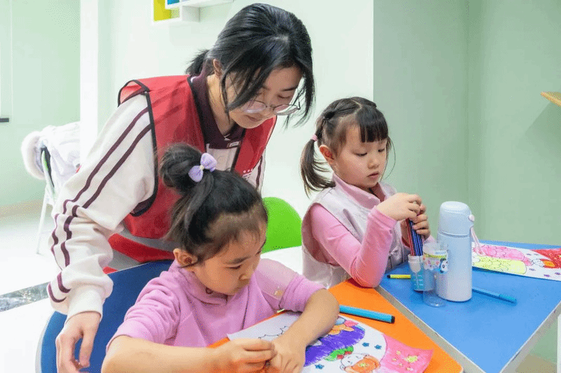 志愿者与小朋友互动