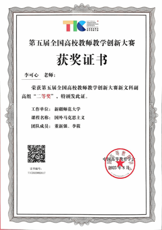 李可心课程团队斩获第五届全国高校教师教学创新大赛二等奖