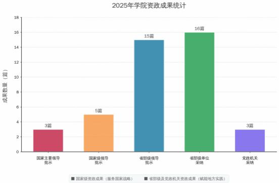 服务国家战略的政治站位与研究担当;15篇要报获省部级领导批示,16篇被省部级单位采纳,3篇被中共党政机关采纳,内容覆盖党的建设、基层治理、区域协调发展、民生保障、意识形态领域安全等关键领域,选题靶向精准、对策务实可行,成为各级决策部门科学施策、高效履职的重要参考,切实体现了资政成果的实践转化效能。